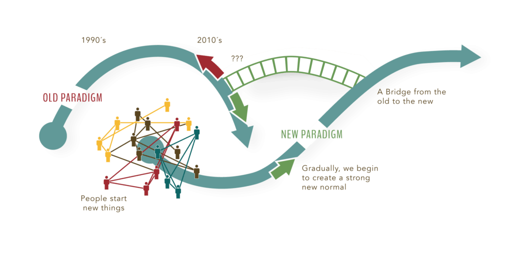As this century began, I completed my PhD in “Learning and Change in Human Systems” by working with people and communities in the Global South – India, Pakistan, South Africa, Zimbabwe, Brazil and Mexico. What I learned with them was that it was time for new stories about how to build heathy and resilient communities. I watched as grassroots leaders engaged people in imagining what might be possible, and then worked with them as a community to create what they imagined. Their focus was not on problems. It was on using what they had to create new possibilities.