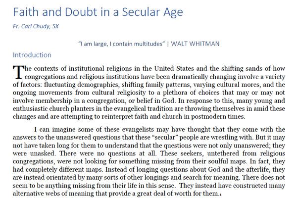 This article looks at the shifting sands of change in Christianity in the United States and the some institutional faith models of attempts to draw bridges of dialogue between religious faith and secularity.