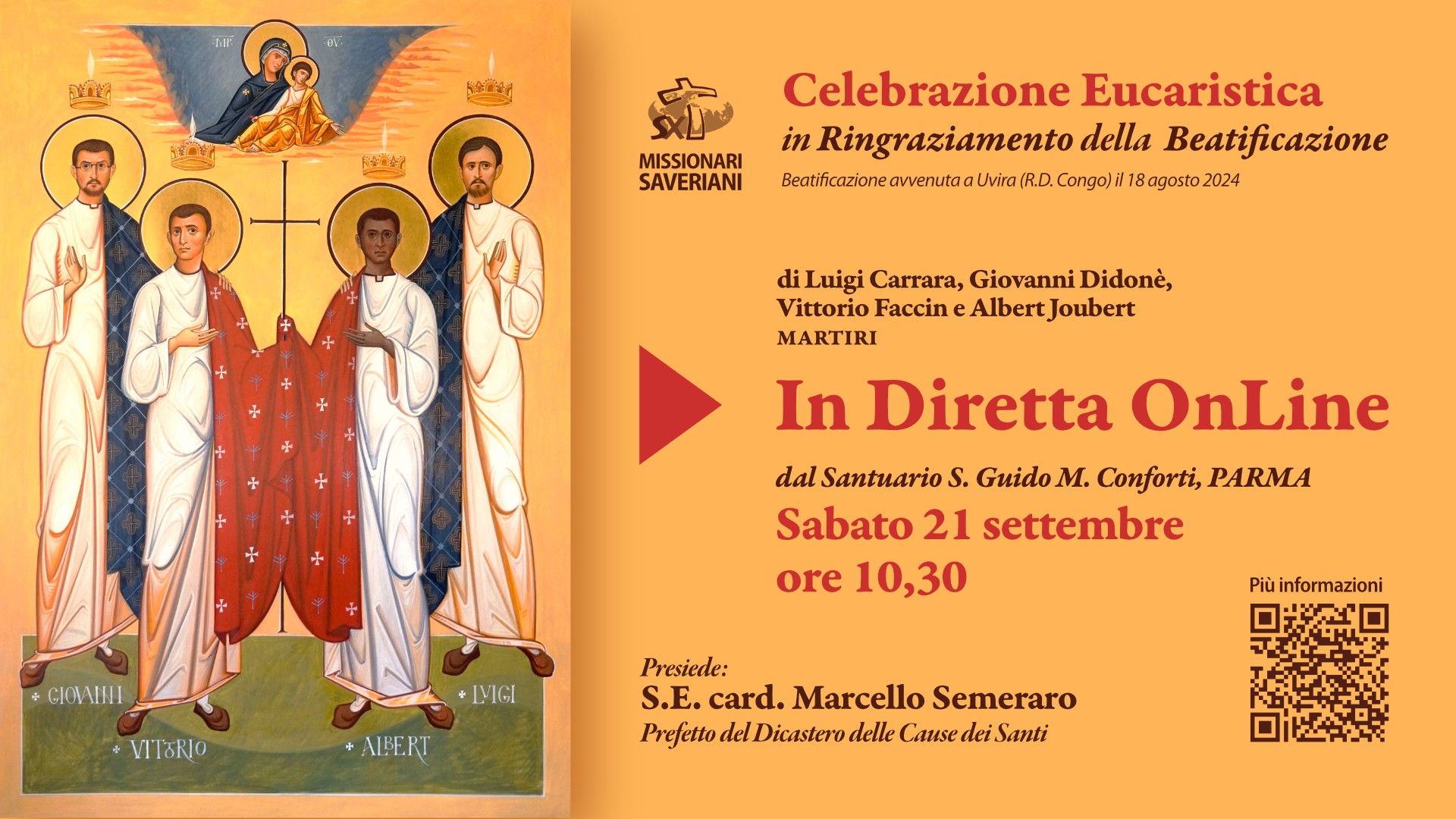 La beatificación de los mártires: Luigi Carrara, Giovanni Didonè, Vittorio Faccin y Albert Joubert, que tuvo lugar el 18 de agosto de 2024 en Uvira, en la República Democrática del Congo, es un evento que marca profundamente la vida de nuestra familia misionera y de toda la Iglesia.